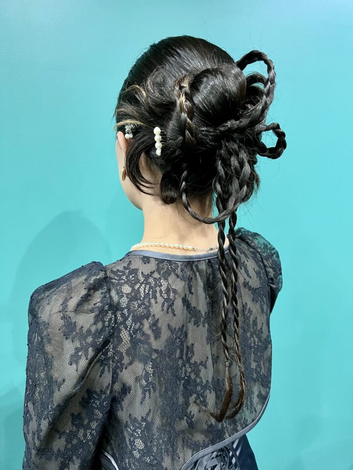 長い髪をいかして個性的なアレンジスタイルに仕上げました